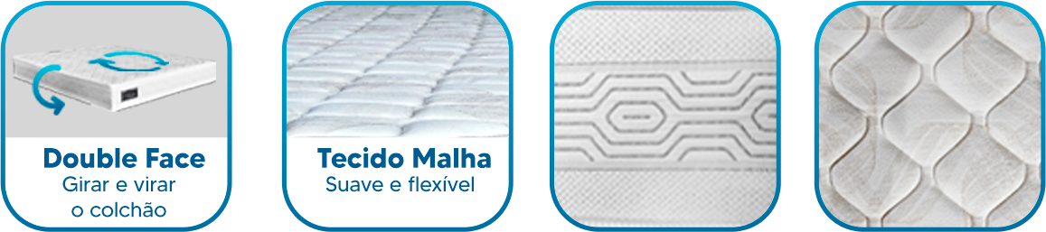 Legacy é um colchão é dupla face, ou seja, pode ser utilizado tanto na parte inferior quando na parte superior, dando maior durabilidade por poder ser girado e virado, com isso a parte utilizada passa a “descansar” no período que não é utilizada. Seu revestimento superior e inferior é feito com o tecido malha altamente flexível e suave ao toque.